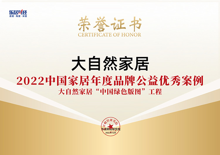 大自然家居榮獲“2022中國家居年度品牌公益優秀案例”