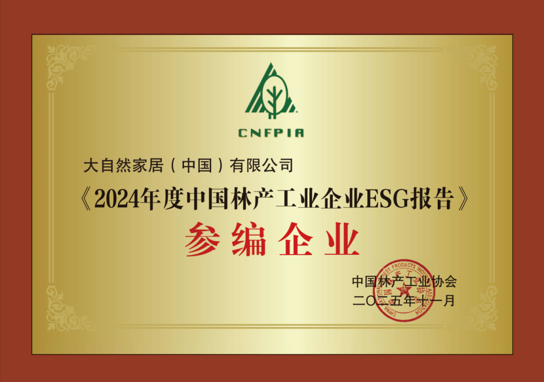 11 月 12 日,2025 全球飾面大會(huì)隆重召開(kāi),大自然家居應(yīng)邀參會(huì),與近千家名企共話行業(yè)發(fā)展趨勢(shì)、分享創(chuàng)新成果。會(huì)上,由中國(guó)林產(chǎn)工業(yè)協(xié)會(huì)主導(dǎo)的《2024 年度中國(guó)林產(chǎn)工業(yè)企業(yè)ESG報(bào)告》正式發(fā)布,大自然家居憑借突出貢獻(xiàn)獲頒參編證書,并在會(huì)上同步推出《大自然家居 2024 年社會(huì)責(zé)任報(bào)告》,全面展現(xiàn)企業(yè)在綠色發(fā)展、社會(huì)責(zé)任等領(lǐng)域的實(shí)踐與成效。